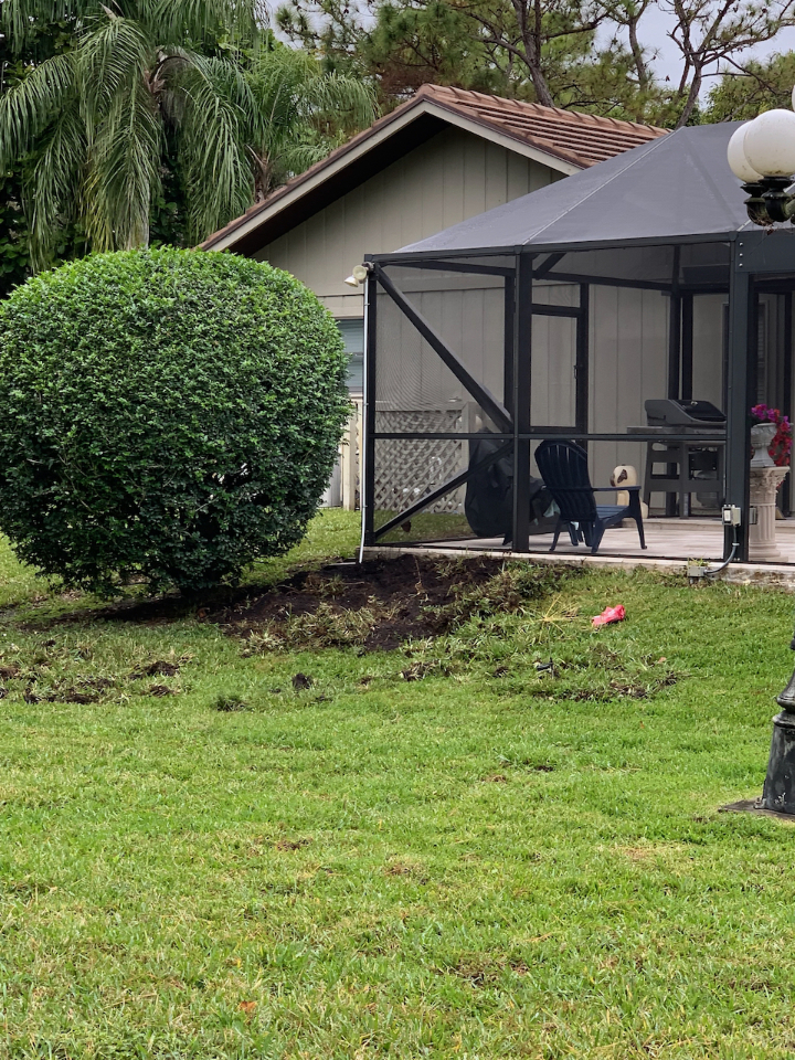 Very big wild boar pigs live in the savannas park. Under certain circumstances the pigs work their way into our community to search for food. Unfortunately their favorite food it's about 3 to 6 inches below the surface of our lawns. They are voracious eaters, and they like grubs, roots, rodents and anything else they can find in the dirt. They seem to be attracted to soft sod or new sod. Their ability to tear up a lawn in one night is remarkable.